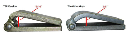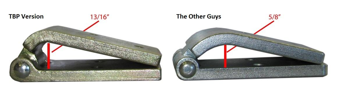 SECONDARY NOTE: These hinges are slightly different than the factory hinges on a 1966 Bronco. Factory 1966 hinges had counter-sunk holes on them, which utilized a large Phillips head bolt to install the hinges. This was an inferior design in our opinion, as the heads of the screws EASILY stripped out, as compared to the hex head standard bolt utilized in later years. You could drill these hinges, giving them a countersunk hole if trying to be era-correct.