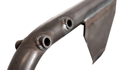 New Front Hoop Shock Mounts for 1966-77 Ford Broncos. These new hoop mounts are a great way to add longer travel to your front suspension. Longer shocks = longer travel. Installation of this kit requires welding. Includes the upper hoop mount and lower mount for each side. One kit required per Bronco.