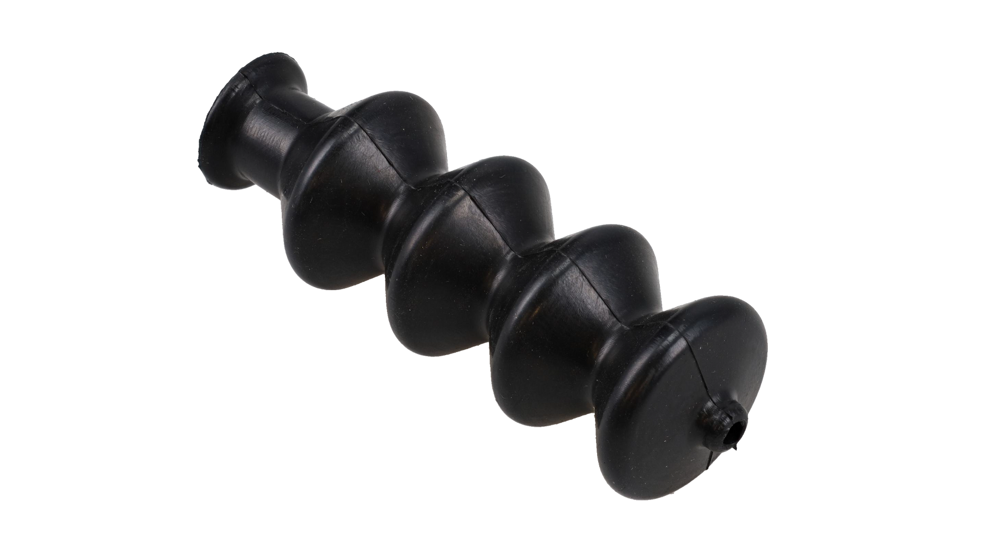Replacement accelerator rod firewall seal for 1966-77 Ford Bronco. This throttle rod firewall boot mounts to the engine side of the early Bronco firewall where the gas pedal rod comes through to connect to the throttle linkage. This throttle rod boot is a direct replica of the factory seal found on classic Ford Broncos with 289 or 302 V8 motors. Not used on six-cylinder applications.