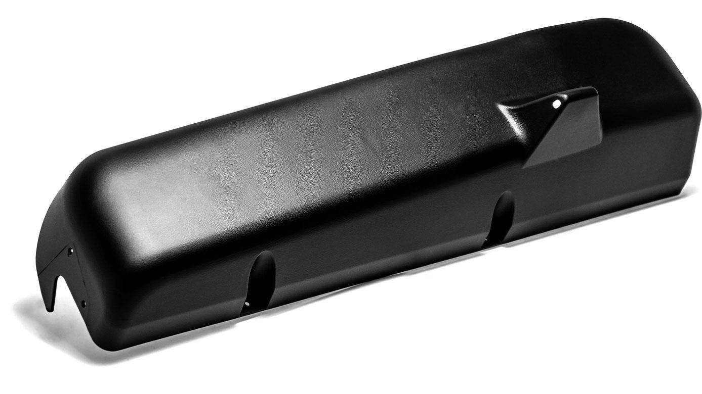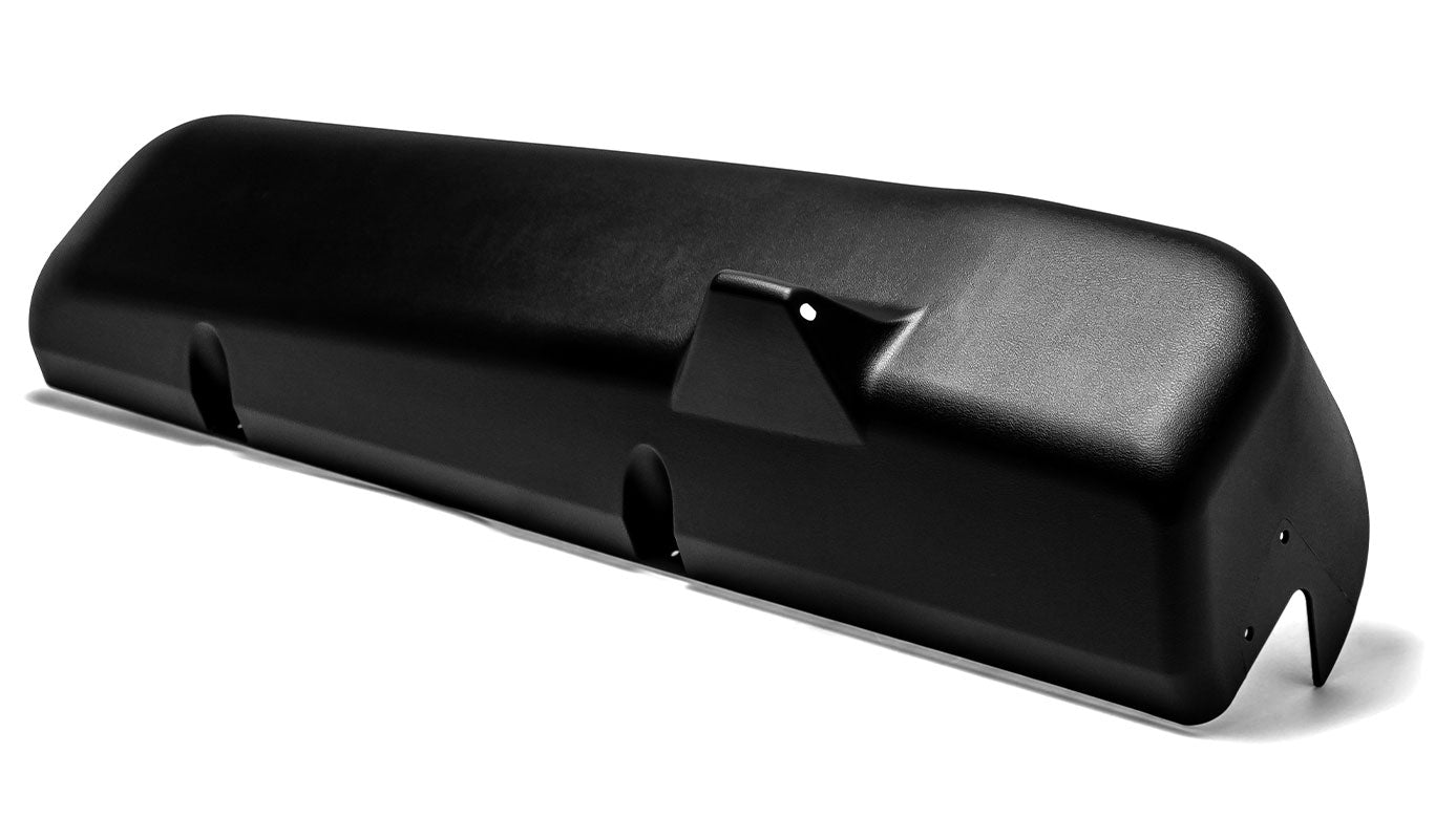 New black wiper cover for 1969-77 Ford Broncos with factory electric wiper motor and linkage assembly. This is a direct replica of the stock original except in black. Conceals the stock wiper linkage and motor. This cover can be used with a wiper motor lowering bracket but will require modification.