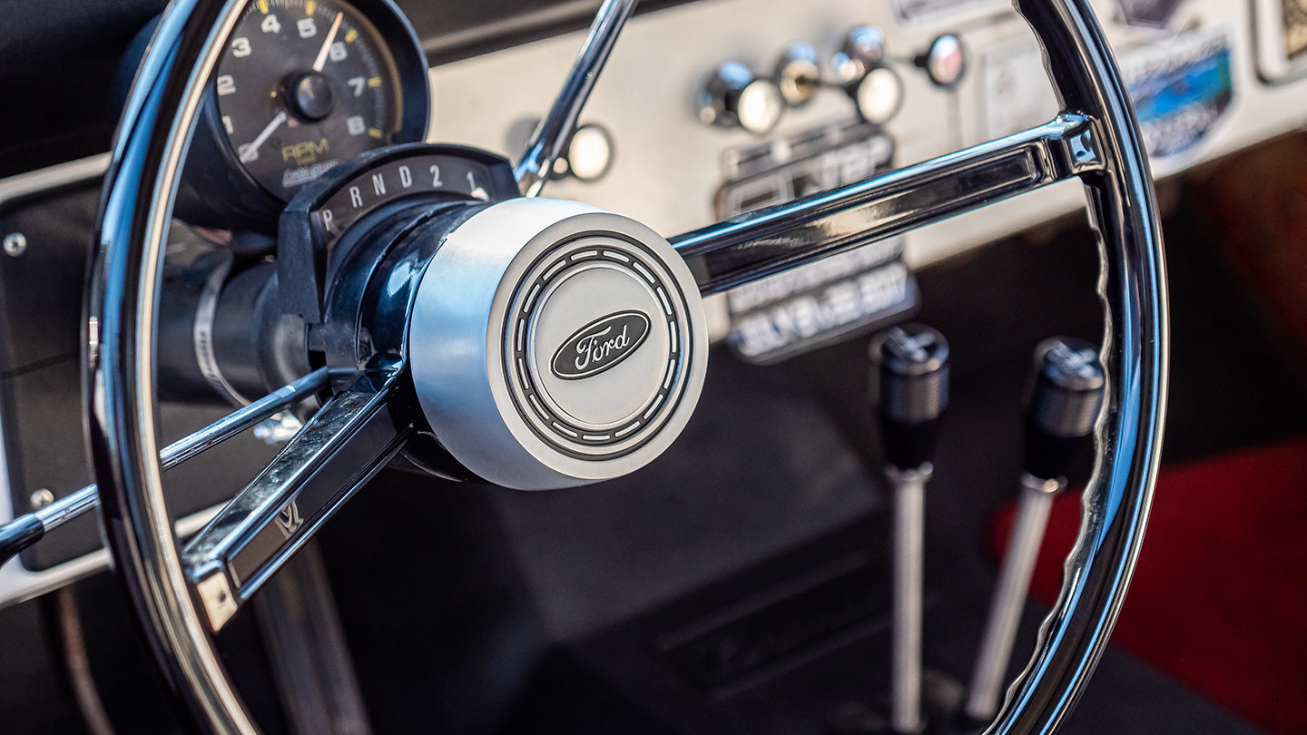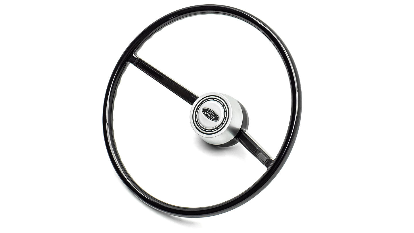 Available to fit factory 1966 to 1973 Ford Bronco steering columns or 1974 to 1977 Ford Bronco steering columns. Includes your choice of chrome or argent horn button assembly. Horn button is licensed by Ford Motor Company.